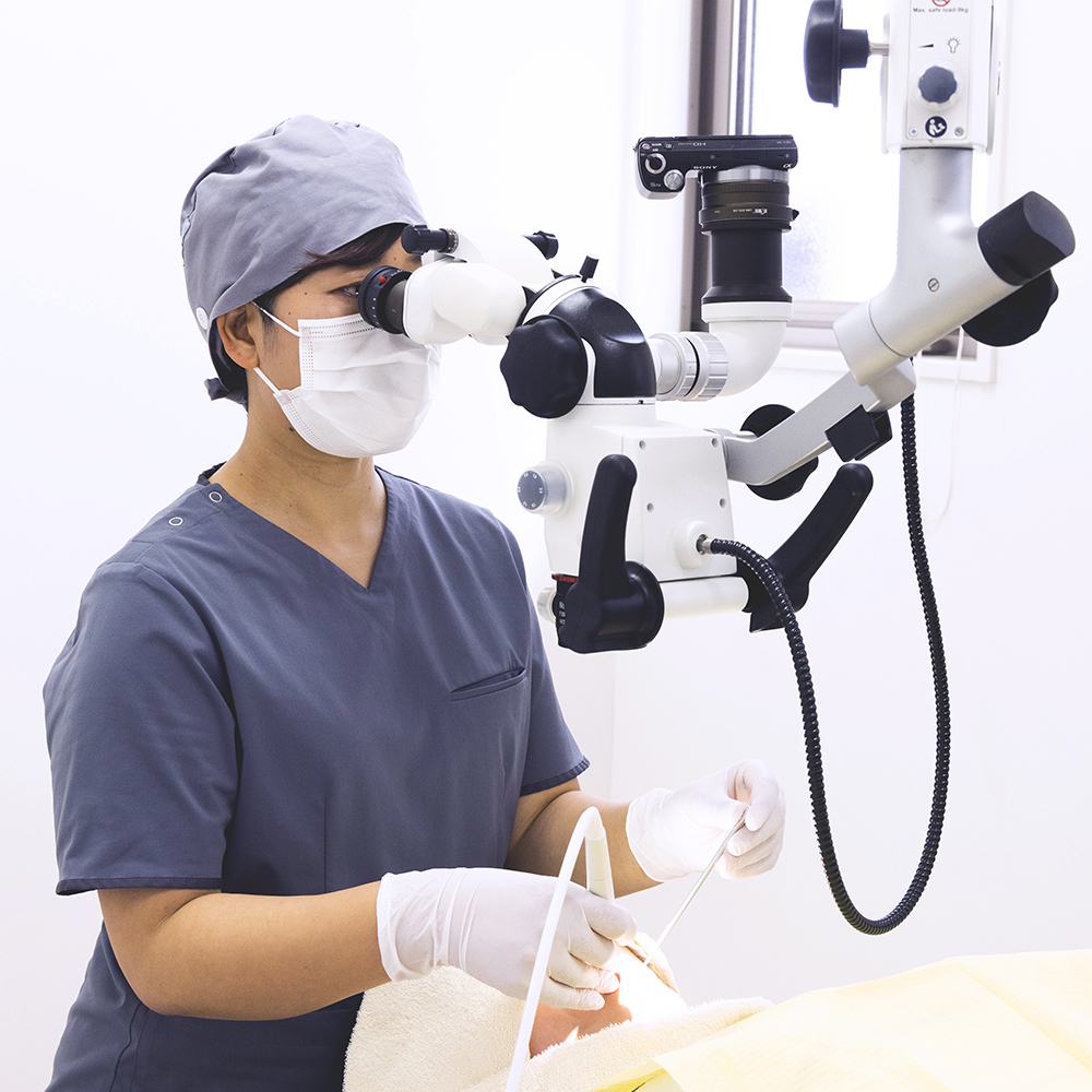 治療の「精度」にこだわりを持つ私どもは、拡大鏡や歯科用の顕微鏡であるマイクロスコープを使って治療を行っています。
